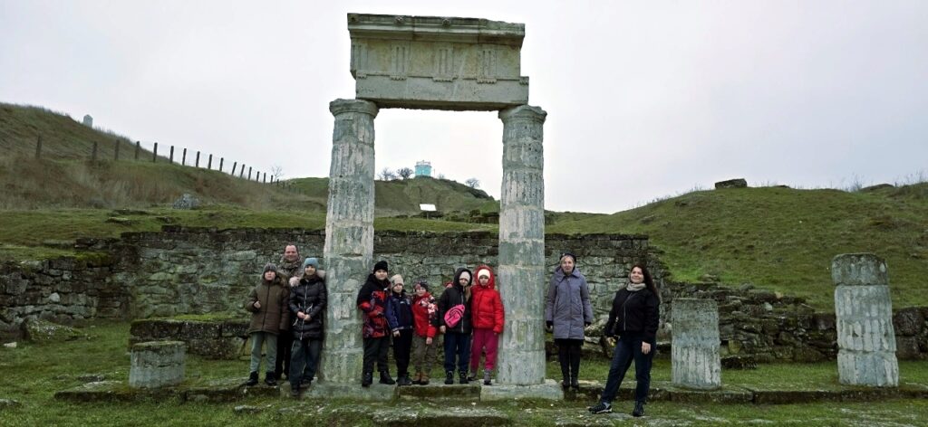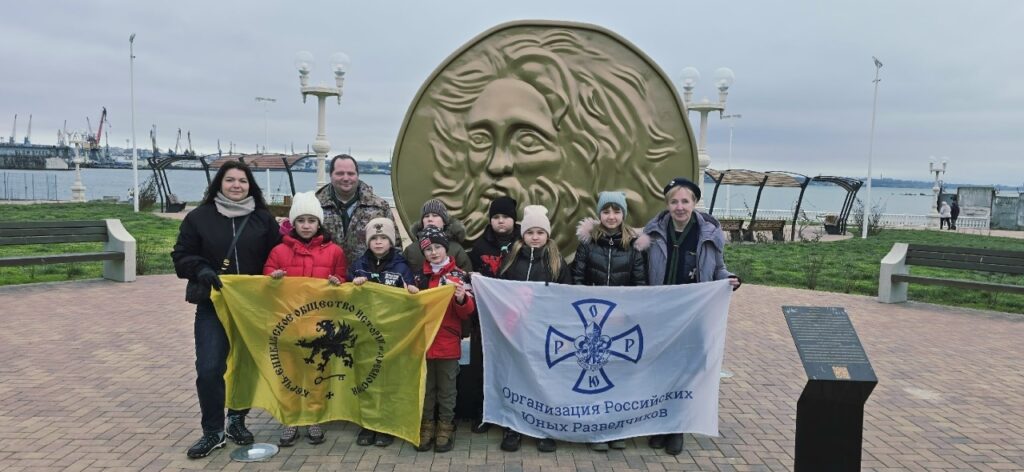 Руководители дружины «Керчь», для юныхъ изслѣдователей провели увлекательную экскурсію по знаковымъ мѣстамъ города: они прогулялись по скверу «Монеточка», поднялись на гору Митридатъ по знаменитой лѣстницѣ и своими глазами увидѣли археологическіе раскопки древняго Пантикапея. Даже порывы вѣтра не мѣшали, а словно дополняли эту удивительную экскурсію.